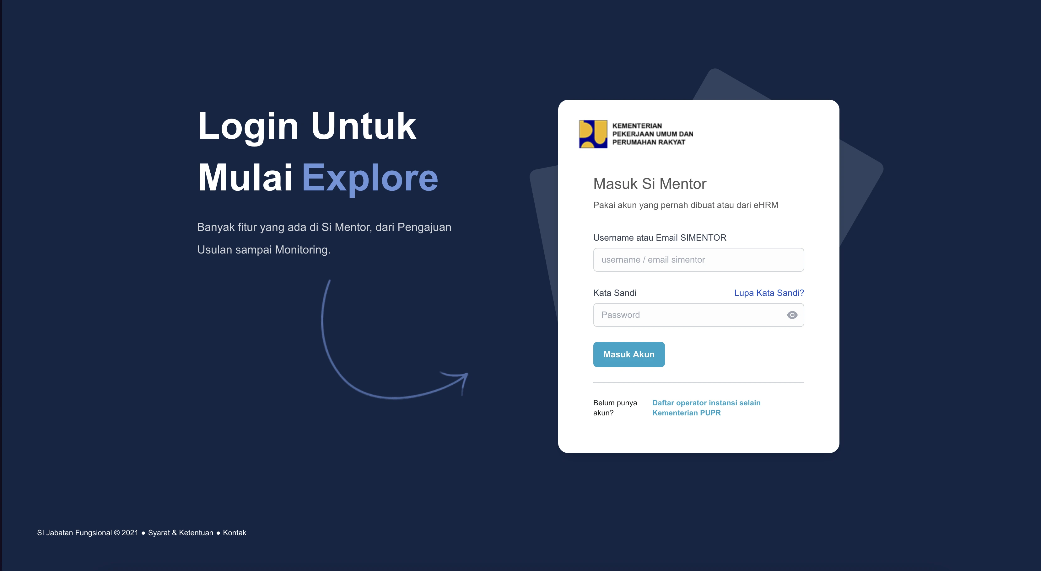 PUPR - JFPU is a specialized workflow portal for the Indonesian Ministry of Public Works (PUPR) to handle rank promotions and organizational shifts for civil servants. As a Backend Engineer, I structured the database and API routes to ensure user rank transitions and activity periods could be logged securely by department heads.